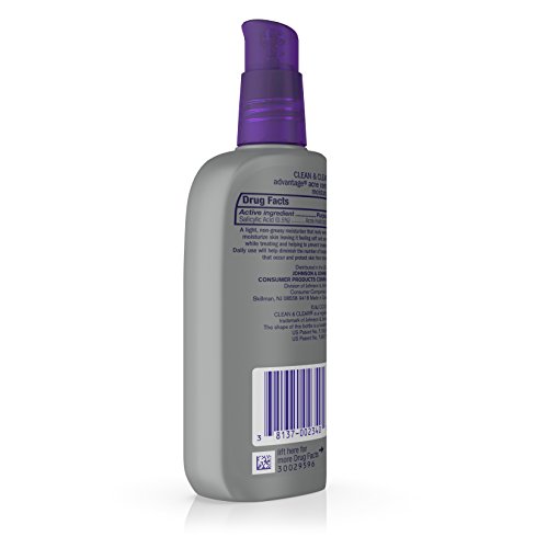 Clean & Clear Advantage Acne Control Moisturizer helps treat and prevent acne while leaving skin soft and smooth. This moisturizer is ideal for normal, oily, and combination skin. With salicylic acid acne medicine, the moisturizing lotion helps diminish the number of breakouts that occur and protects skin from dryness. Light and non-greasy, Clean & Clear Advantage Acne Control Moisturizer is oil-free and safe for everyday use.Feature
