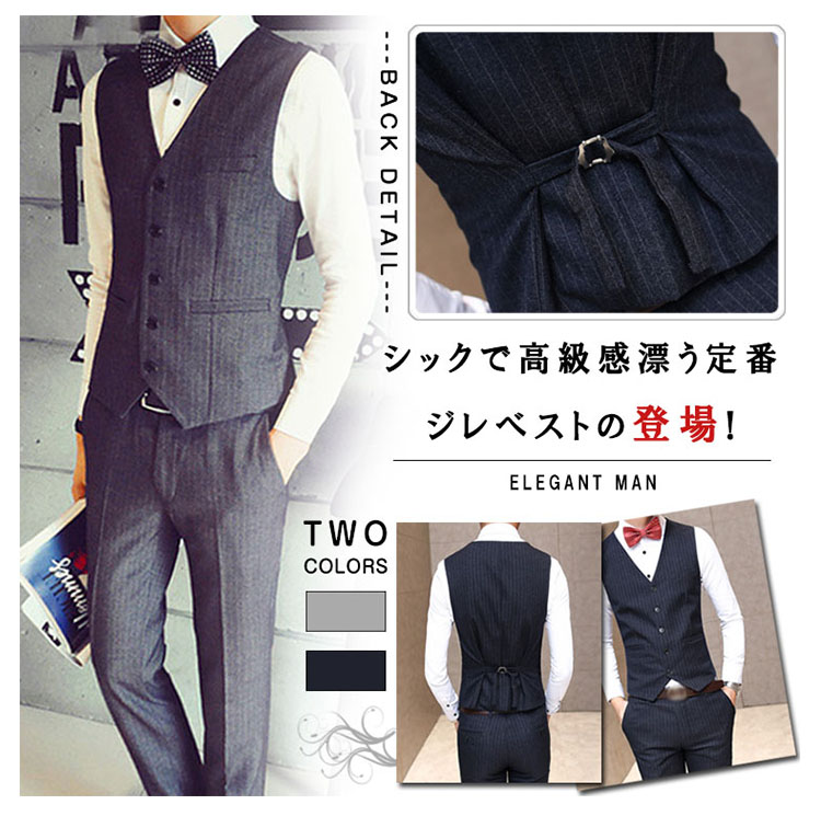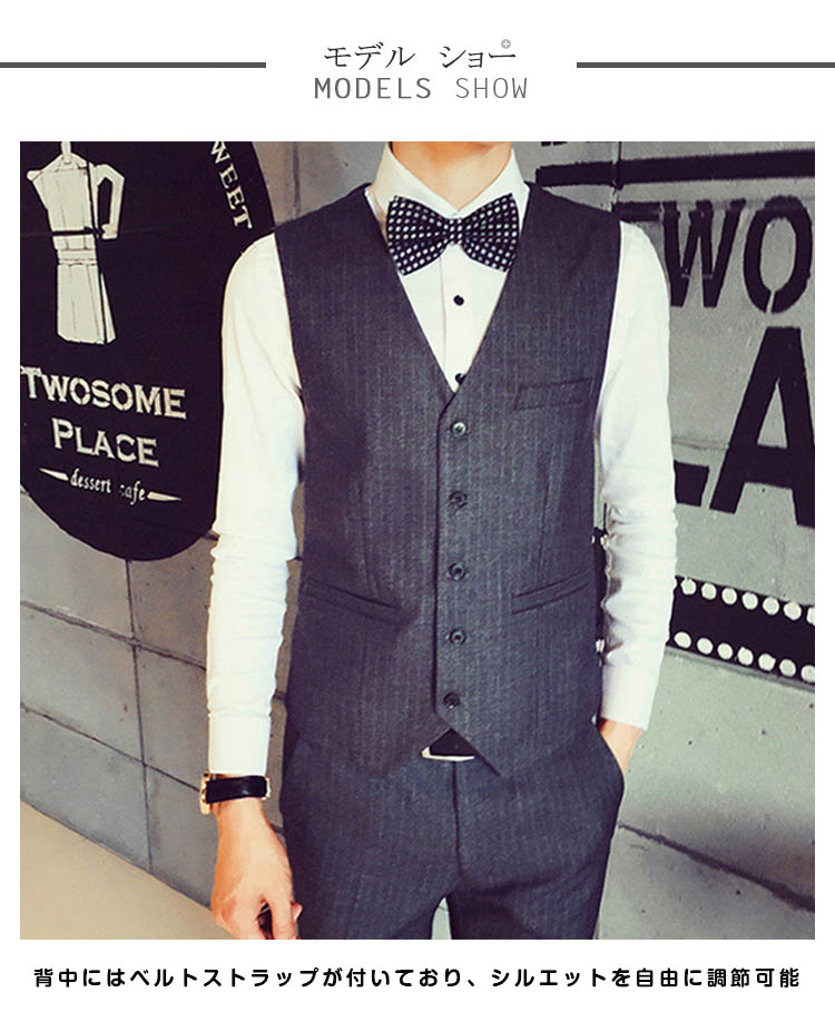 | シックで高級感漂う定番ジレベストの登場!背中にはベルトストラップが付いており、シルエットを自由に調節可能落ち着いた色合いがどんな服にも相性よくこれからのシーズンの主役になる間違いなしフォーマルとしてだけでなく普段仕様にもオシャレに重宝します◎ | |