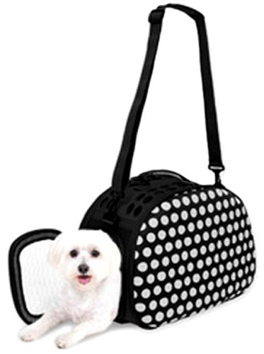 Petmate 21788 Curvations Cat and Puppies Tote with Dots, Black/White