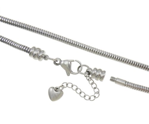- Feature : INCLUDES ONE BONUS European-style charm, gift bag, and manufacturer warranty card with every order, suitable for immediate gift giving, making this A Real Value. / HYPO-ALLERGENIC materials to avoid nearly all metal allergy problems: Nickel, Lead & Cadmium-Free. HIGH QUALITY 316L surgical grade stainless steel resists corrosion and wear. / THE MOST POPULAR sized 18" snake chain with 1.5" extender and heart charm. Beautiful oxidized silver patina is the natural color and will never wear off, tarnish, or turn colors. STRONG STEEL won't pull apart so you won't lose your charms. Lobster claw clasp is easy to close by yourself. / COMPATIBLE fit with Add a Bead jewelry bracelets and necklaces brands like Trollbeads Chamilia Biagi Caprice Hallmark Connections Oriana Lovelinks Reflections Individuality Storywheel Novobeads Storyvines DaVinci Soufeel Kays Ohm SimStars Charmed Memories Brighton Zable and Pandora. / 60-DAY UNCONDITIONAL original manufacturer money-back guarantee from The Knight's Treasure. Carefully hand inspected to insure quality. Screw end will fit all beads and charms with a core size of 3.5mm and up.