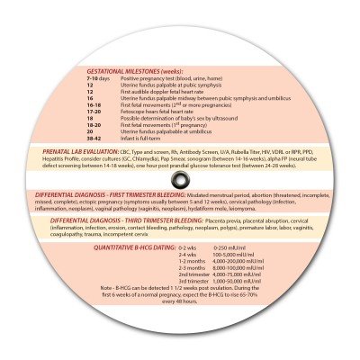 -. Binding : Health and Beauty -. Brand : MDpocket -. EAN : 0810515020239 -. Feature : Dates to help determine approximate date of delivery by using the first day of last menstrual period orprobable day of conception / Helps with charting fetal weight and length on a weekly basis to ascertain healthy development / Fetus Crown Rump Length (CRL) measurements / Biparietal Diameter (BPD) measurements / Gestational Milestones and much more! -. Label : MDpocket -. Manufacturer : MDpocket -. Model : No Model -. MPN : 4203 -. PackageQuantity : 1 -. PartNumber : 4203 -. ProductGroup : Health and Beauty -. ProductTypeName : HEALTH_PERSONAL_CARE -. Publisher : MDpocket -. Studio : MDpocket -. Title : Pregnancy Wheel -. UPC : 810515020239