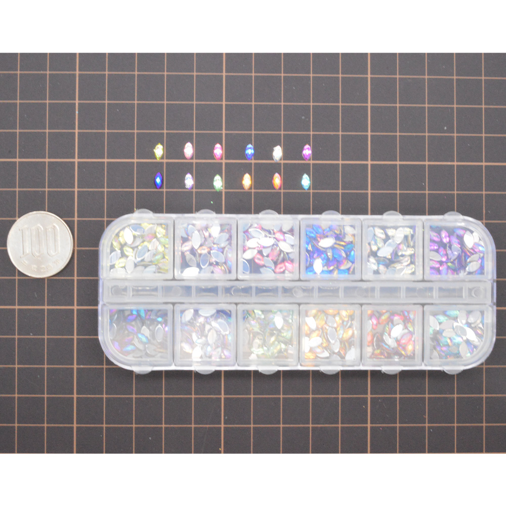 ■商品説明:12色の楕円パーツが入っています。キラキラパーツでかわいいデザインが!レジンアクセサリーやネイルにも大活躍です♪