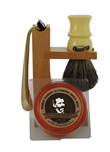 -. Title : Colonel Conk Model 237 4-Piece Hardwood Stand Shave Set with Deluxe Boar Brush, Gold Tone Razor and Soap