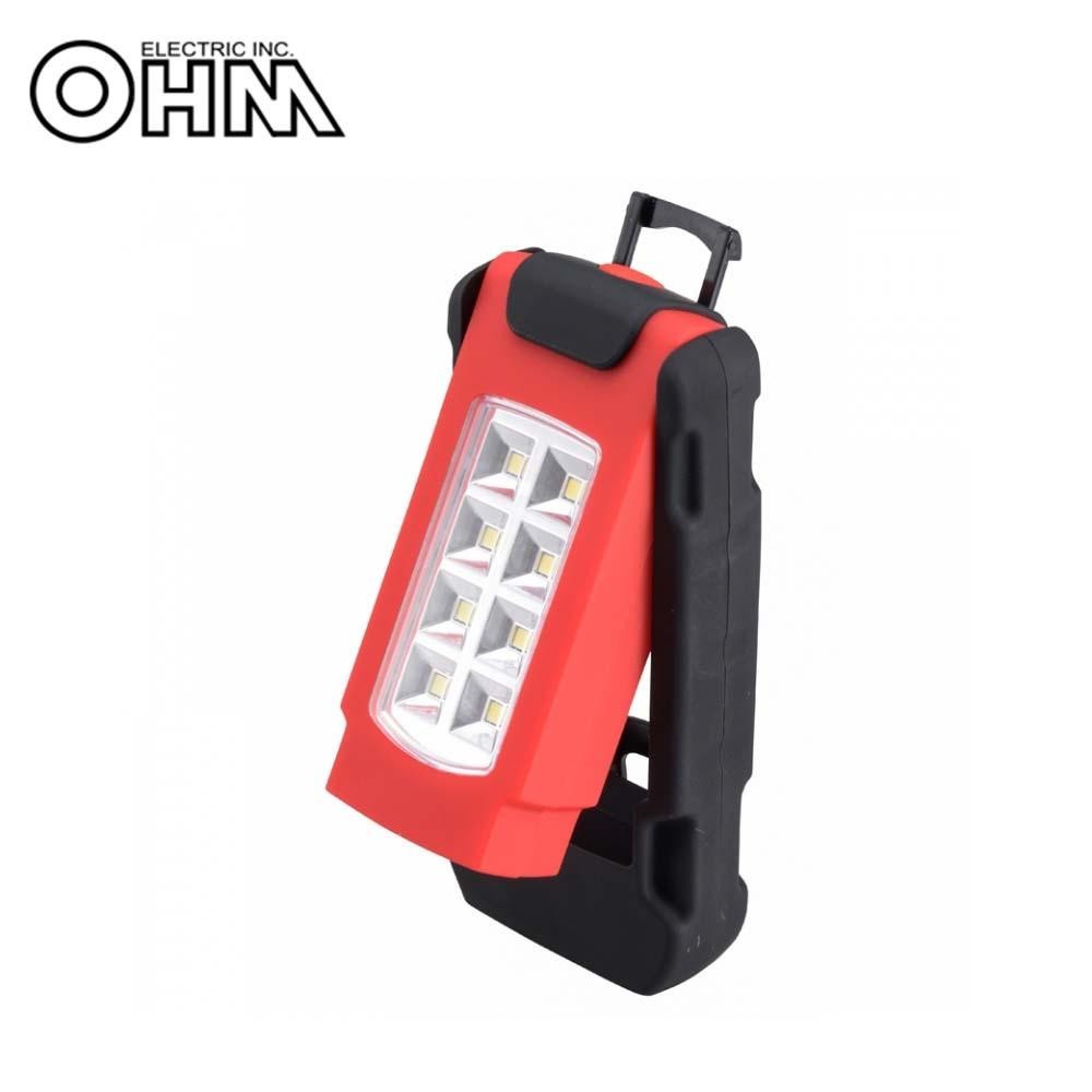 マグネットで固定したり、フックで吊り下げて使ったりと、様々な場所で活躍するLED多目的作業ライトです。グリップ部が回転し、本体の角度が調整可能です。