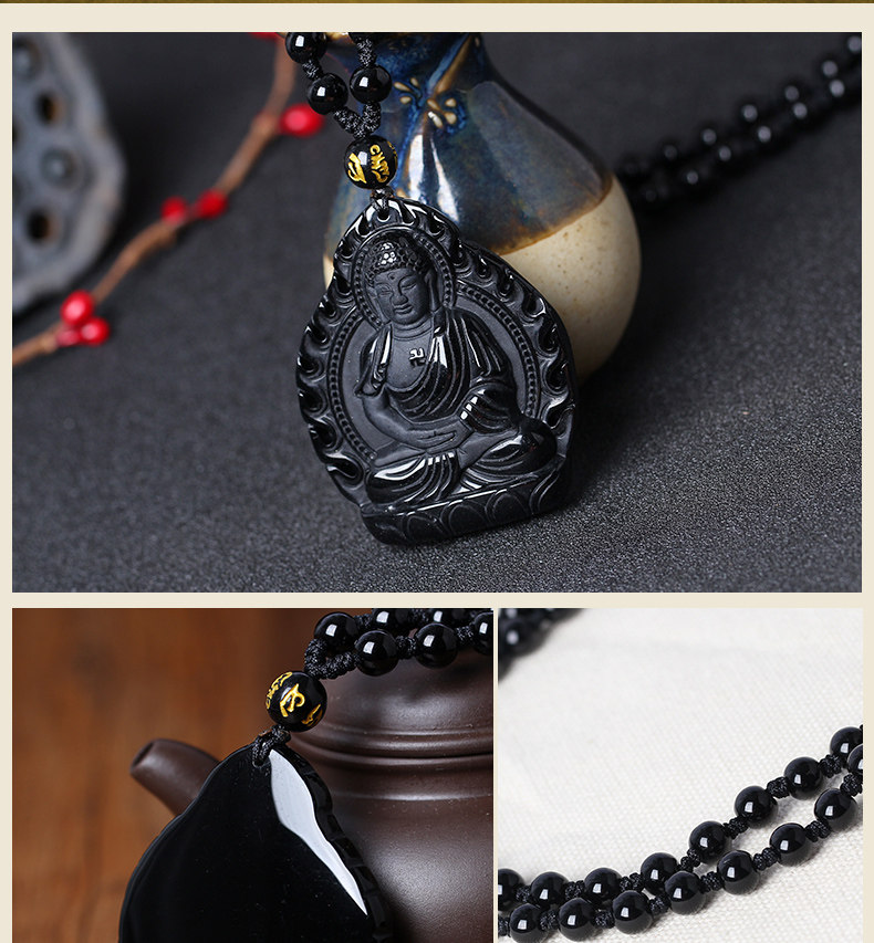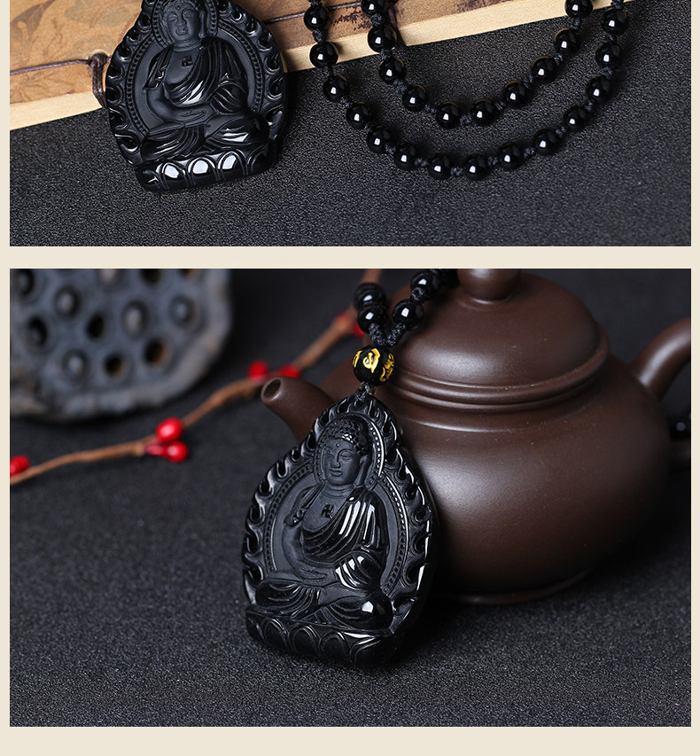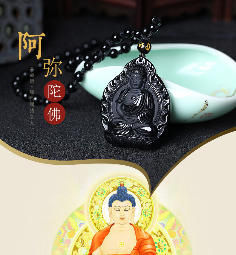 开光曼唯肖狗猪佛谛坠生肖属狗猪本命年黑曜石本命佛阿弥陀佛吊坠