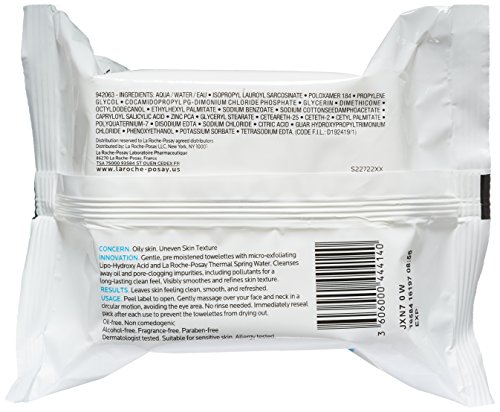 La Roche-Posay Effaclar Oil-Free Cleansing Towelettes for Oily Skin Face Wipes, 25 ct.