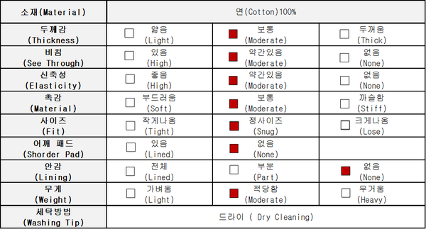 첫 세탁은 반드시 드라이클리닝을 권장합니다.