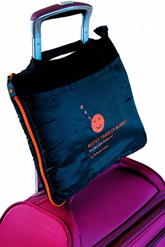 - EVERYTHING STAYS ORGANIZED The travel blanket has an attached rip-stop nylon carrying case with a stylish orange nylon coil zipper and strap handle. The sleep mask, foam ear plugs and neck pillow have their own small 5”x7” storage pouch that fits in the traveling blanket pockets.