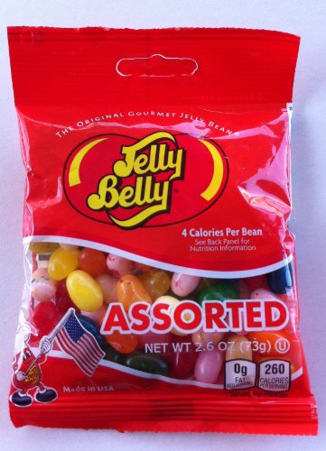 -. Feature : 2.6 oz. package of assorted jelly belly candies / Fat free food, 4 calories per bean / Made in the USA / The Original Gourmet Jelly Bean