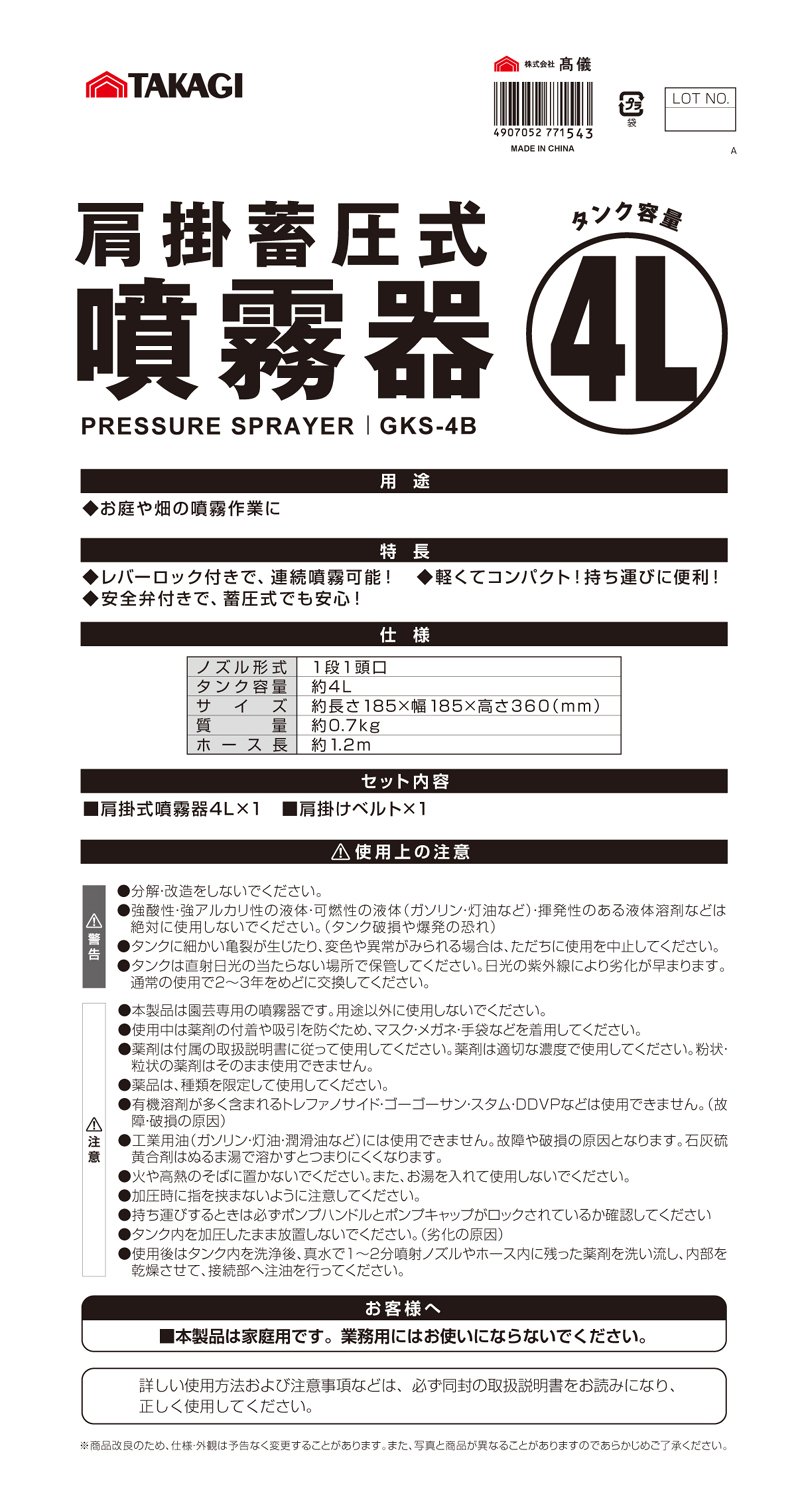For spraying in the garden and field