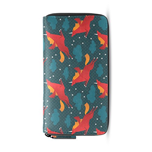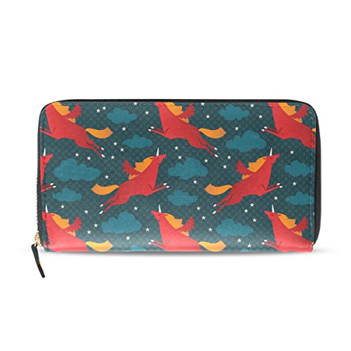 (imobaby)/Accessories/Wallets, Money Key Organizers/DIRECT FROM USA/IMOBABY Women Wallet Unicorns Red Wallet Bifold Long Purse with Zipper