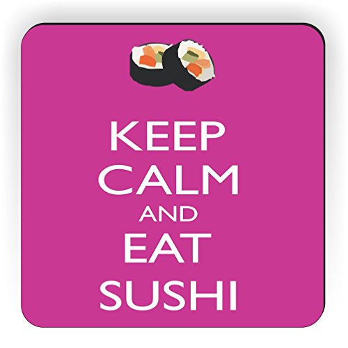 Rikki Knight Keep Calm and Eat Sushi Design Square Fridge Magnet, Rose/Pink