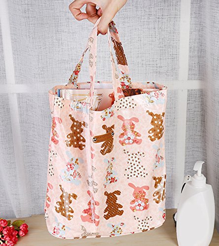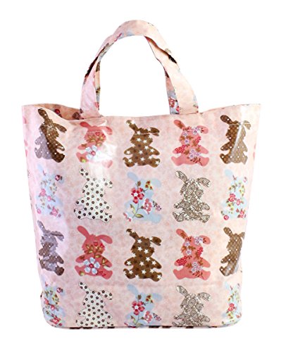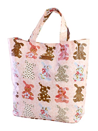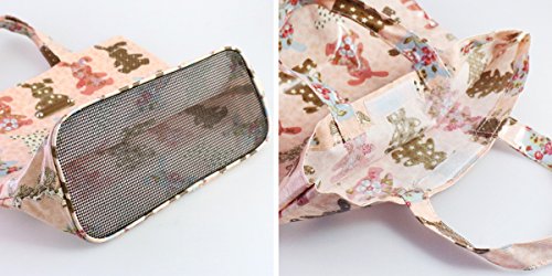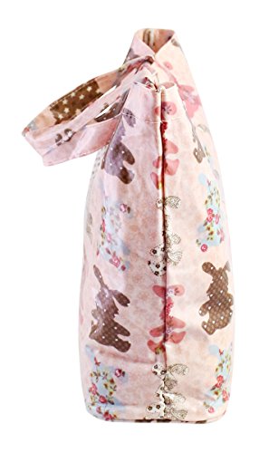 Pink Canvas Multicolor Rabbits Shoulder Book Lunch Tote Bag