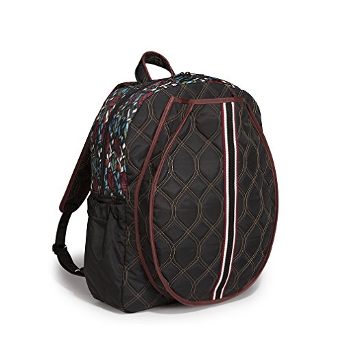 -. Binding : Apparel -. Brand : Cinda b. -. Department : unisex-adult -. Feature : Stylish, super functional tennis backpack measures 17 x 13.5 x 4.5 inches; spacious interior has plenty of room for clothes, shoes and toiletries / Exterior zip pocket holds 2 standard size racquets; 2 side pockets for water and tennis balls; 3 interior slip pockets; adjustable backpack straps provide hands-free ease / Made in America; water and stain resistant; machine washable; quilted poly/nylon fabric is lightweight and extremely durable / Head-turning design elements and unique colorways ensure that you'll always travel in style; cinda b takes you from around town to around the world without missing a beat / 19x16x7 -. Label : Cinda b. -. Manufacturer : Cinda b. -. Model : 266029 -. PackageQuantity : 1 -. ProductGroup : Apparel -. ProductTypeName : LAGE -. Publisher : Cinda b. -. Studio : Cinda b. -. Title : cinda b. Tennis Backpack
