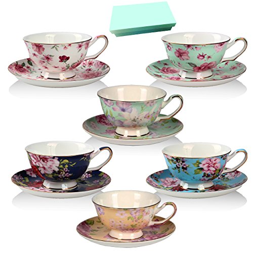 (Brew To A Tea)/Kitchen Dining/Tableware/DIRECT FROM USA/Tea Cup and Saucer Set of 6, Floral Tea Cups, 8 Oz.Bone China Porcelain