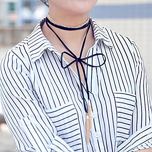 Fashion Lace Choker Necklace Jewelry for women and girlsDescription: Choker necklace with rhinestone shape pendant for women and girls. Two Layers necklace with black chain and sliver clasp. The pendant is made of acrylic and alloy. Suitable for party, evening and event. Notice to the buyers: The color may be minor different from the picture because of the photograph.