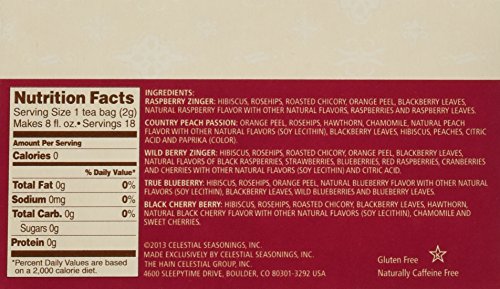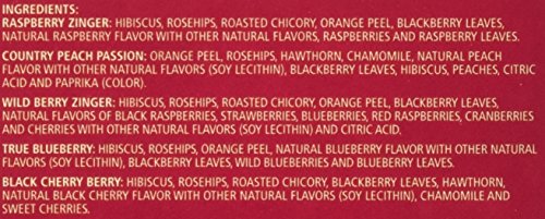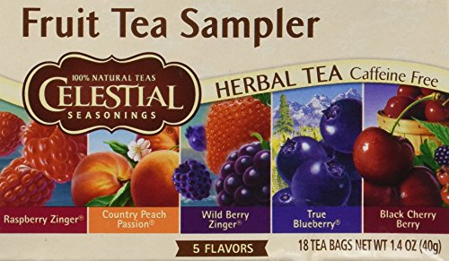 Our Fruit Tea Sampler features two classic favorites -- Raspberry Zinger and Country Peach Passion -- plus some exciting new flavors. Have some berry cherry cheer with the lucious flavor in Black Cherry Berry. Cranberry Apple Zinger abounds with the fresh fruits of an American harvest.
