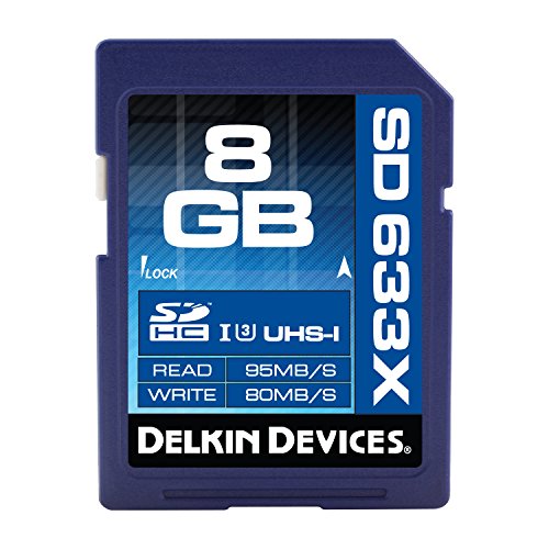 Delkin's 8GB Elite 633X SDHC memory card boasts transfers of 80MBps write and 95MBps read, ideal for HD and 3D enabled video cameras and DSLRs. The UHS (Ultra High Speed) bus-interface guarantees greater performance in applications like real-time recording and large size video capture.Feature