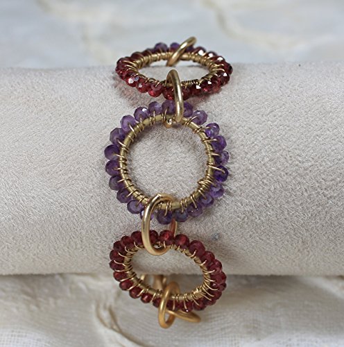 -. Title : Five Ring Semi-Precious Stone Bracelet gold plate