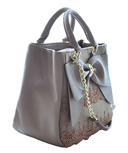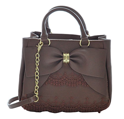 Carry everything you need in style this Betsey Johnson Bow on Bucket Satchel. Features PVC Exterior adorned with lace overlay, Big Bow, and Signature Betsey hardware, Snap tab closure opens to fully lined interior with center zip pocket, 2 slip and one back wall zip pocket.