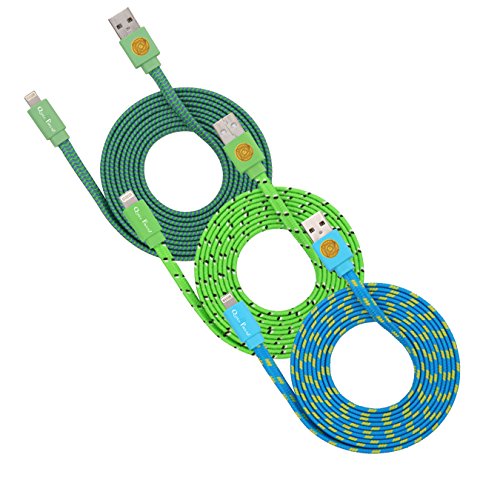 Qable Powerz 6-Feet Braided Flat Noodle Charger Cord for iPhone 6, 6 Plus, 5, 5C, 5S, iPad 4, iPad Mini, Ipad Air, iPod Touch 5th Gen, iPod Nano 7th Gen, IOS, Teal / Green / Blue