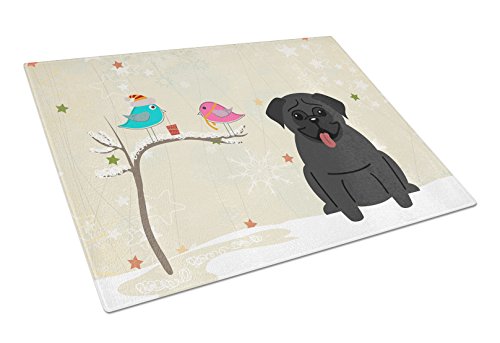 Caroline's Treasures BB2478LCB Christmas Presents Between Friends Pug Black Glass Cutting Board, Large, Multicolor