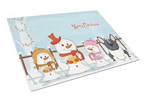 Caroline's Treasures BB2343LCB Merry Christmas Carolers French Bulldog Black White Glass Cutting Board, Large, Multicolor
