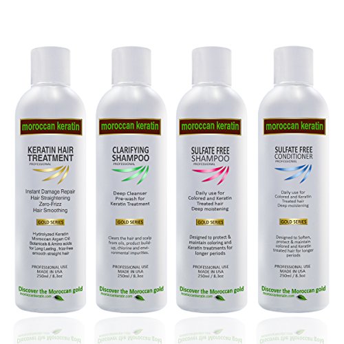 -. Title : Moroccan Keratin for Brazilian Keratin Hair Treatment GOLD SERIES Proven Formula 250ml x4 with Sulfate Free Shampoo Conditioner and Clarifying Shampoo Made in USA