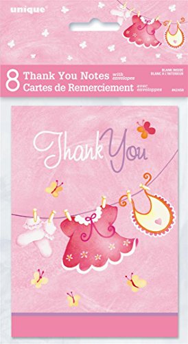 Pink Clothesline Girl Baby Shower Thank You Note Cards, 8ct