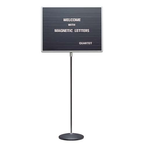-. Feature : Single-pedestal magnetic letter board adjusts from 45'' to 62'' high. / Find the right height to fit your display space with this chrome finish stand that adjusts from 45'' to 62''. / Set up, update, and change messages quickly and easily. / Black board has alignment ridges for magnetic letters. / Radius-cornered frame.