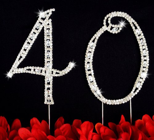 40th Birthday Cake Topper - Large 4 1/2" Tall 40th Wedding Anniversary Cake Topper - Acrylic Rhinestone Number Cake Topper