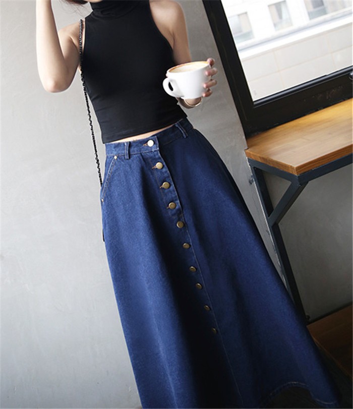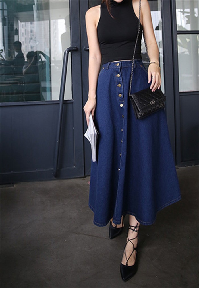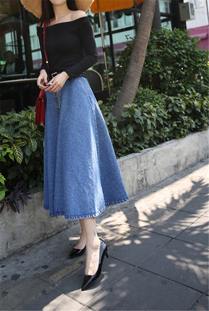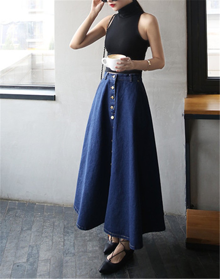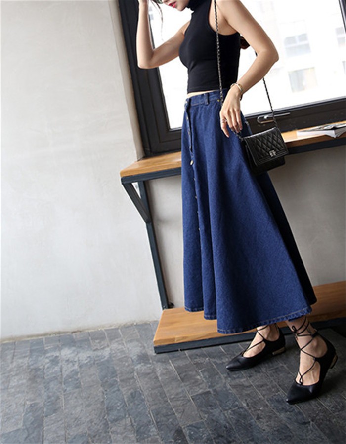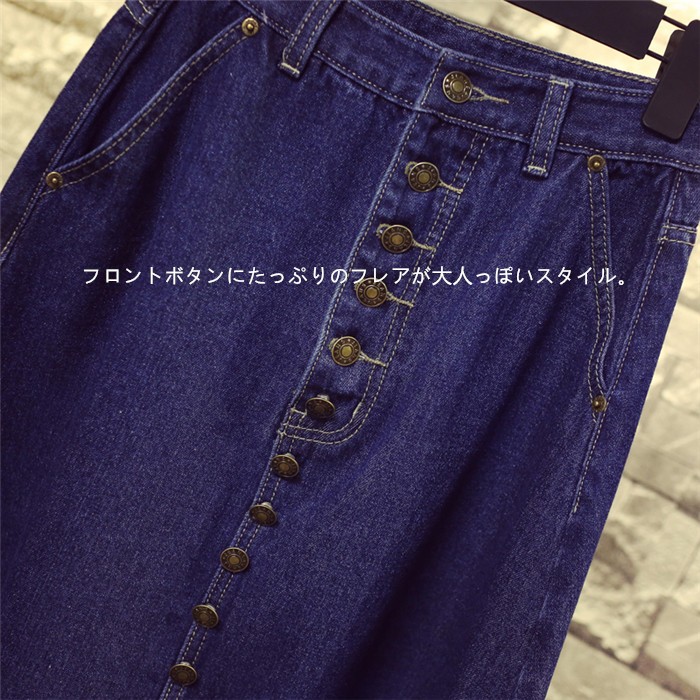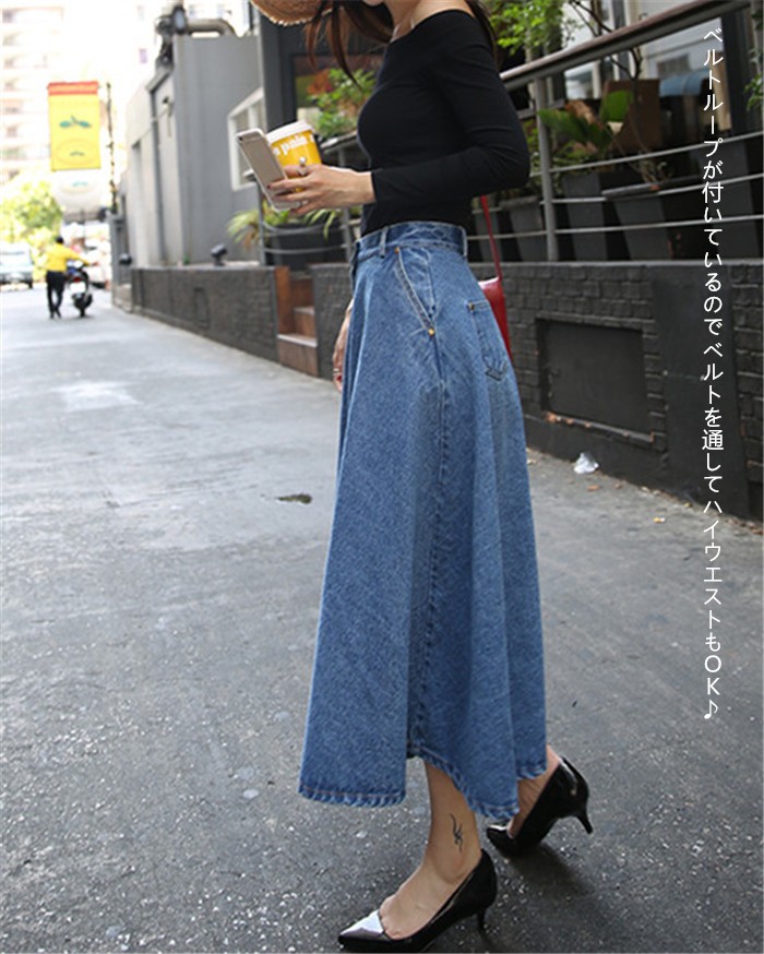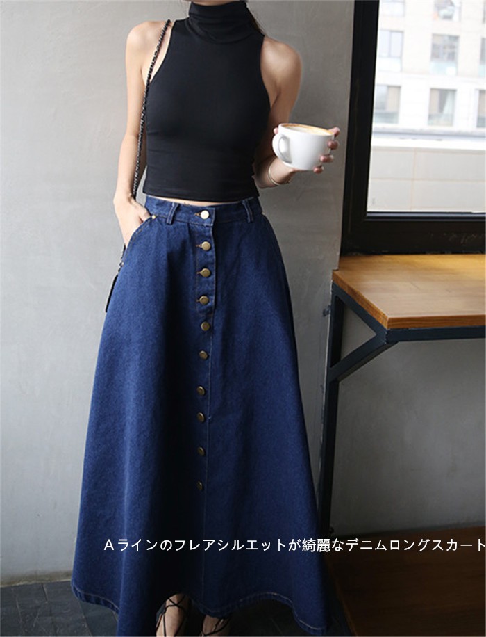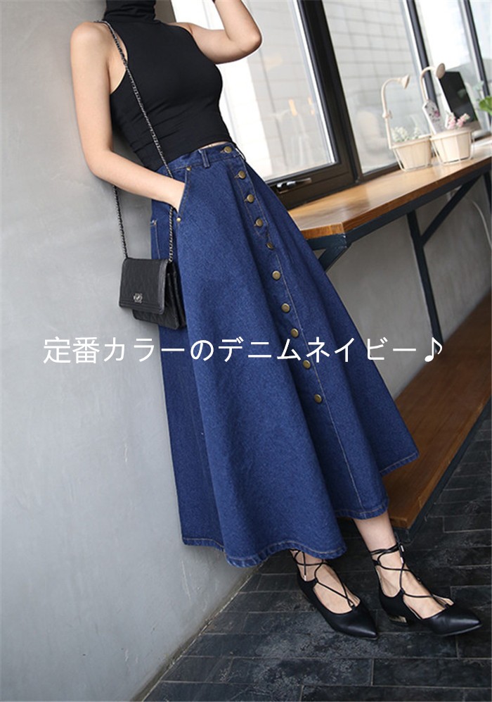 シンプルでスタイリッシュに見せるデニム生地のロングスカート。Aラインに広がるフレアデザインが優雅でエレガントな印象です。カジュアルシーンに使いやすいオシャレな1着です。Tシャツやノースリーブ、ニットなど幅広い組み合わせを楽しめます。 商品情報製品番号:012単位: CM (平置き採寸)素材: デニムスタイル: デニムスカートサイズ: S / M / L色: ブルー/ネイビー彈性: 伸縮性なし----------------------シーズンレスでお使い頂ける、着回し自由なアイテムです☆★サイズ: S スカート丈:80cm ウエスト:63cm ヒップ:88cm★サイズ: M スカート丈:81cm ウエスト:68cm ヒップ:94cm ★サイズ: L スカート丈:82cm ウエスト:73cm ヒップ:100cm サイズ表の実寸法は商品によって2cm程度の誤差がある場合がございます。