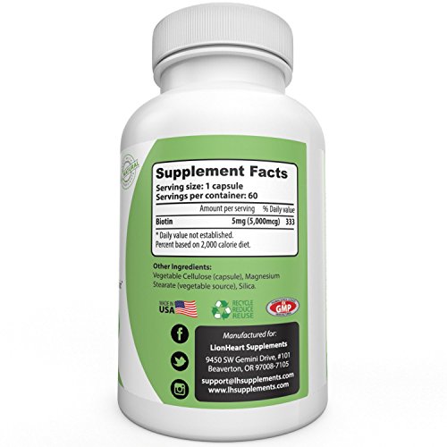 LionHeart Supplements Premium Biotin 5000mcg Biotin For Hair Growth