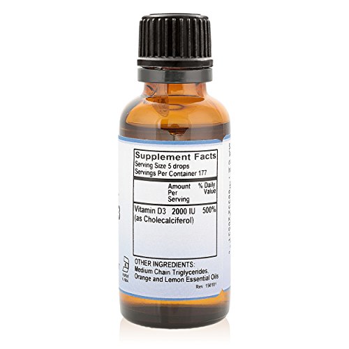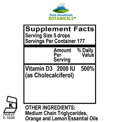 CONVENIENT: Easy Dropper dispenses 2000 IU of flavored vitamin D liquid ( as Cholecalciferol ) in every serving. Liquid Vitamin D3 for All Ages - kids children and adults.