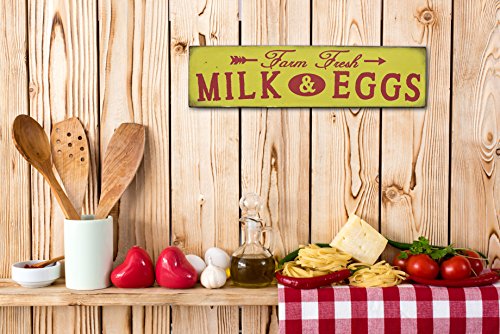 Barnyard Designs Farm Fresh Milk & Eggs Retro Vintage Tin Bar Sign Country Home Decor 15.75" x 4"