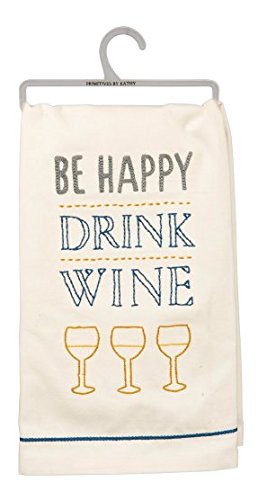 Primitives by Kathy PBK LOL Embroidered Kitchen Towel - Be Happy Drink Wine
