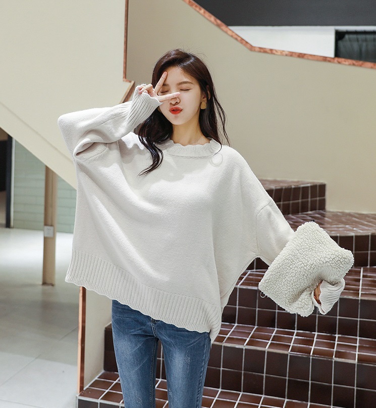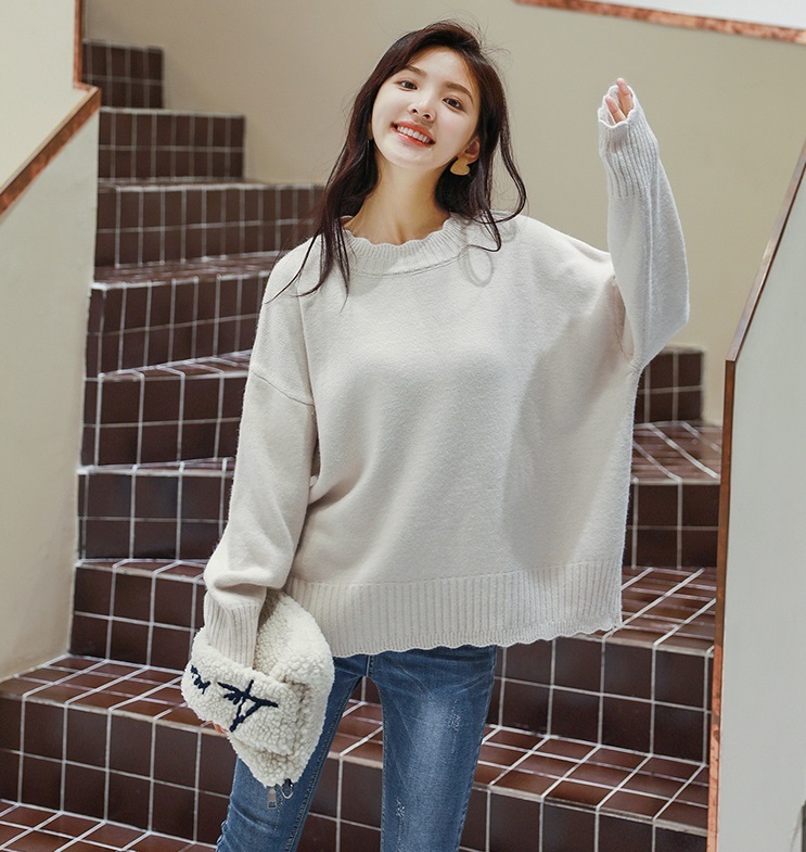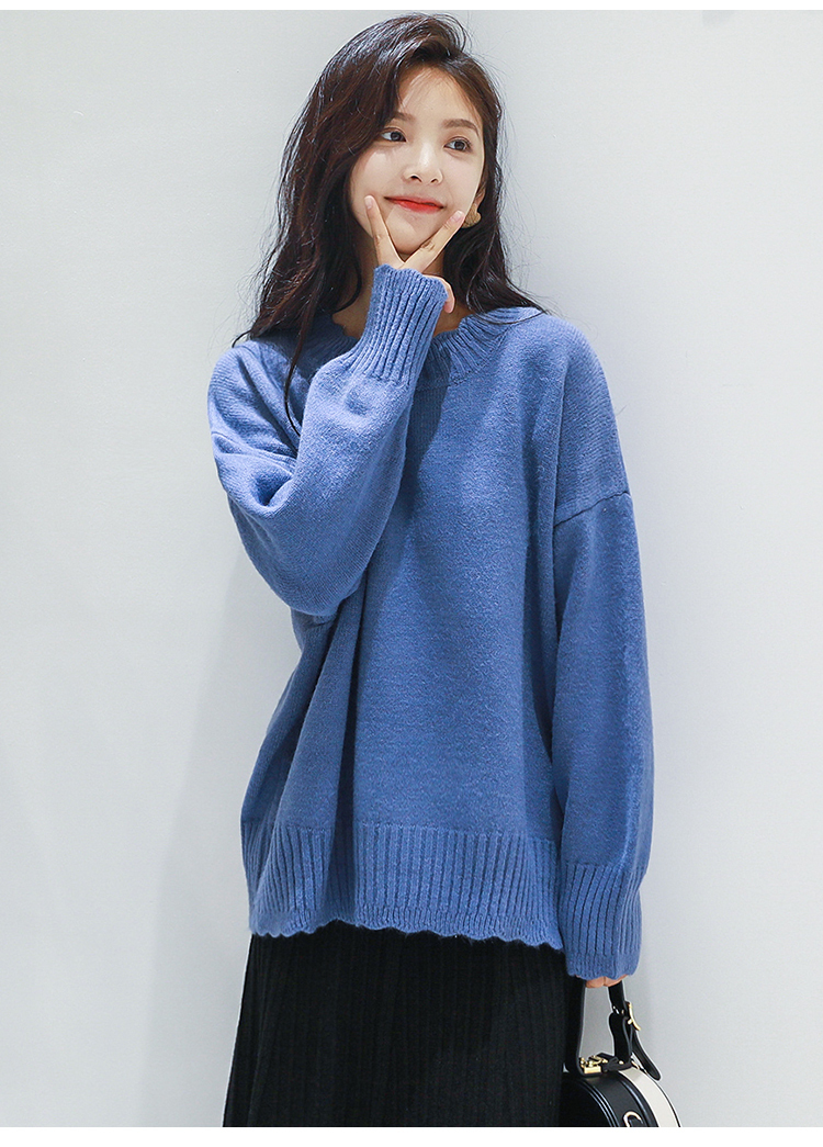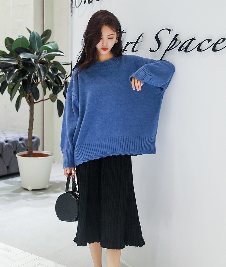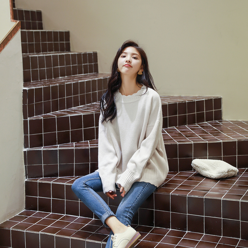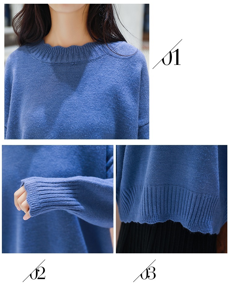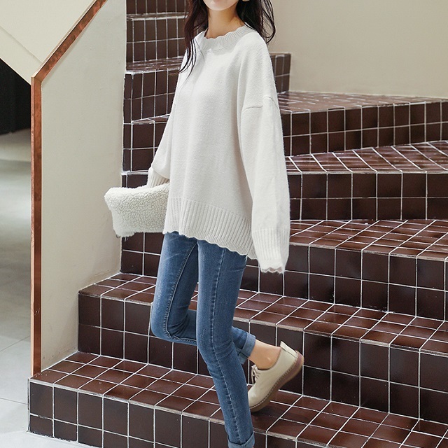 スカラップカットされた首元、袖口、裾部分がガーリーさを引き立たせるきれいめニットです♪