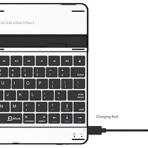 Package includes: JETech Bluetooth keyboard, USB charging cable, user manual
