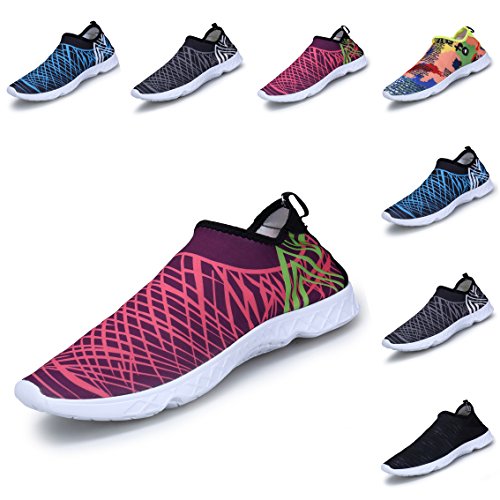 -. Feature : fabric / QUICK DRY: Breathable and smooth fabrics with fine stretch on uppers, flexible and comfortable. Smooth designed neck prevents chafing when wearing our water shoes. / FASHIONABLE STYLE: Designed as the fashionable sneaker. Possess one pair of this shoes can make you more different and fashionable with individual character / UNIQUE SOLE DESIGN: Unique drainage hole sole and mesh insole to ensure proper water flow out of them which creates a cooler and healthier shoe environment, quick-dry, super comfortable during water sports / FOOT SAFETY: The EVA soles, with a really comfortable and fashionable sneaker soft sole, are flexible yet thick enough to protect your feet from stepping on rock and stone.