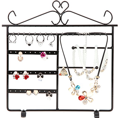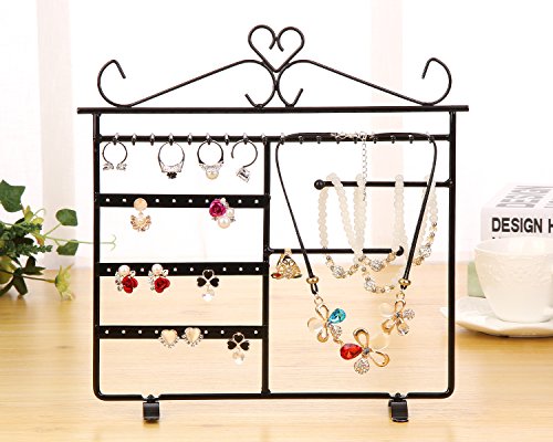 DESIGN---This jewelry holder is made of iron and finished in lacquer, looks elegant and fashion. The unique design is in the right: 2 bars you can hanging your necklaces / bracelets / rings / hair accessories / earrings as you like