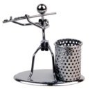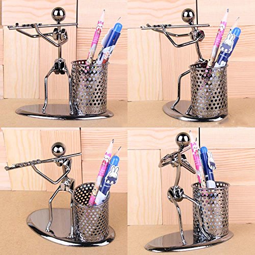 - Desktop organizer pen holder featuring a barrel-shaped pencil holder next to a metal man playing the Flute.This is a very unique fashion personality gift, suitable for any occasion as a gift to a friend.