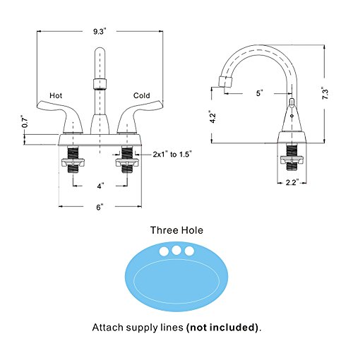 Warm tips: this 2-handle widespread bathroom faucet don’t include the supply inlet hoses. Supply Inlet Hoses can be purchased separately: B077XCVJ7T.