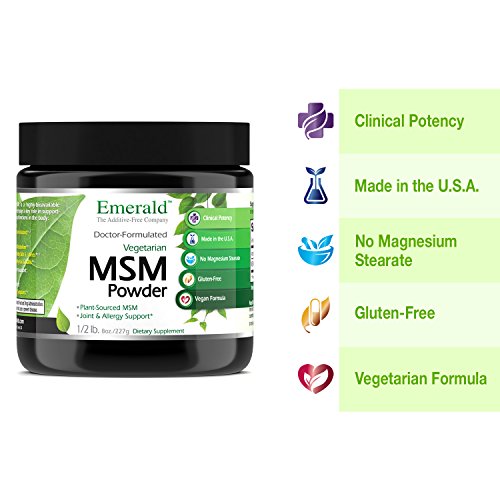 MSM (methylsulfonylmethane) is commonly taken for joint problems, aches and pains, and allergy season support. MSM also helps nourish the skin and remove toxins from the bodym like a natural cleanse or detox. MSM is known to help improve immune function, lower inflammation, and restore healthy bodily tissues.Emerald Laboratories is formulated by Dr. Mark Stengler, Author of Prescription for Natural Cures. Dr. Stengler validates all Emerald Laboratories products with the help of blood panels drawn from patients in his La Jolla, CA medical practice.