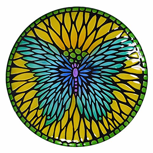 Peaktop - Outdoor 18-Inch Mosaic Butterfly Fusion Glass Bird Bath w/ Stand