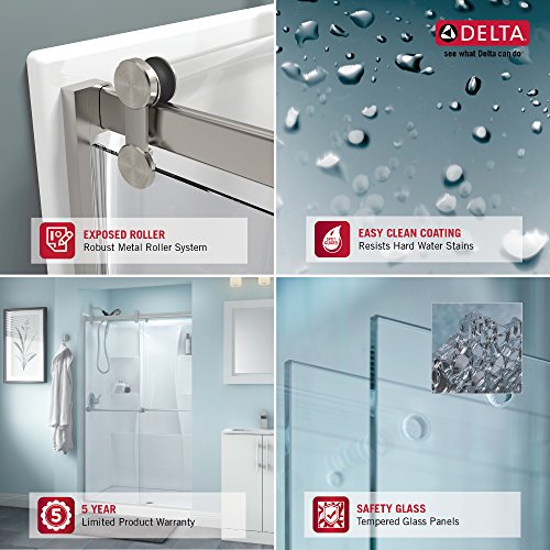 Trinsic shower door handle doubles as a convenient place to dry wet towels or stage decorative towels. Shower door comes with a 5 year limited warranty. Complete your bathroom update with the matching Delta Trinsic collection bath hardware