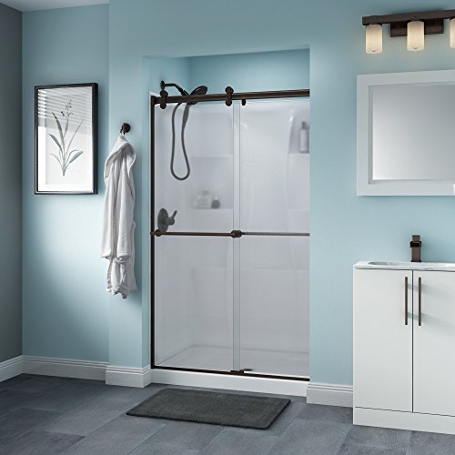 Delta Shower Doors SD3276525 Trinsic 48" x 71" Semi-Frameless Contemporary Sliding Shower Door in Bronze with Niebla Glass