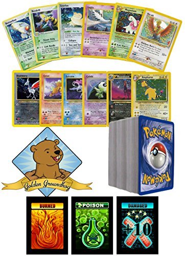 -. Binding : Toy -. Brand : GoldenGroundhog -. EAN : 0722306879769 -. Feature : 100 Assorted Pokemon Cards from the first 3 Generations of Sets. / All Older Set Pokemon Cards / Comes with some Rares / Includes 1 Custom Golden Groundhog Box / The Perfect Collection for any Pokemon Fan, All cards in great condition -. IsAdultProduct : 0 -. Label : GoldenGroundhog -. Manufacturer : GoldenGroundhog -. MPN : GoldenGroundhog -. PackageQuantity : 1 -. PartNumber : GoldenGroundhog -. ProductGroup : Toy -. ProductTypeName : TOYS_AND_GAMES -. Publisher : GoldenGroundhog -. Studio : GoldenGroundhog -. Title : 100 Assorted Pokemon Old School Cards Bundle With Rares Includes 1 Custom Golden Groundhog Box -. UPC : 722306879769