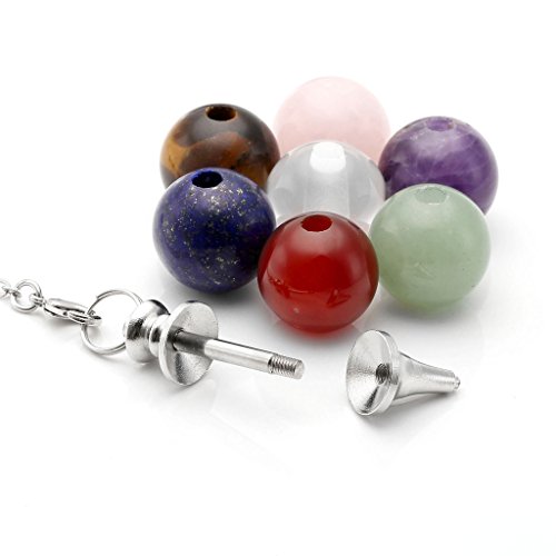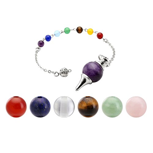 Top Plaza 7 Chakra Reiki Healing Crystal Replaceable Natural Gemstone Dowsing Pendulum Pendant/Bracelet With 7 Chakras Gemstone Chain (7 Chakras Set)