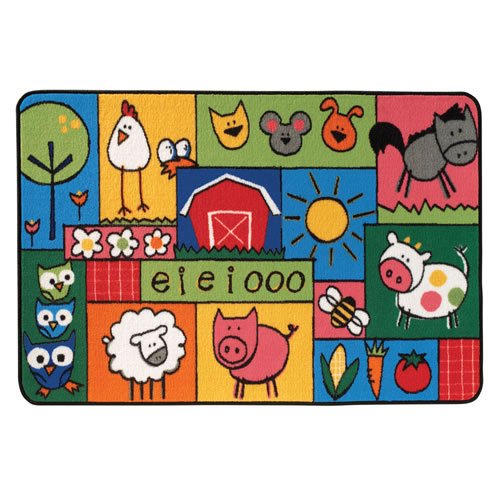 Product Description This colorful rug features a fun old mcdonald's farm theme designed for learning and to stimulate a child's imagination. Great for use in small play areas. Measures 3' X 4'6". 0