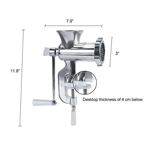 Studio : Mochiglory Publisher : Mochiglory Product Description Specifications: Color: Silver Material: 304 stainless steel Size: Approx.9.3*1.6*5.1inch(Total Length*Diameter of the shaft*Total Height) Net weight: 1040g Handle length: approx. 6.7inch Blade and the meat plate material: 420 stainless steel Feed inlet size: 3.7 * 2.4inch Standard meat plate diameter: 0.6inch Desktop thickness requirements: 1.6inch below Package included: 1 x Manual Meat Grinder Mincer Special statement: Due to manual measurement, the goods' size may exist 0.4-0.8inch error. Please understand. Because of different monitors, please allow color differences.